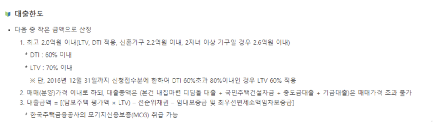 - 부부합산 연간급여(소득)가 6천만원 이하 (생애최초, 신혼부부, 2자녀 이상 가구는 7천만원 이하)