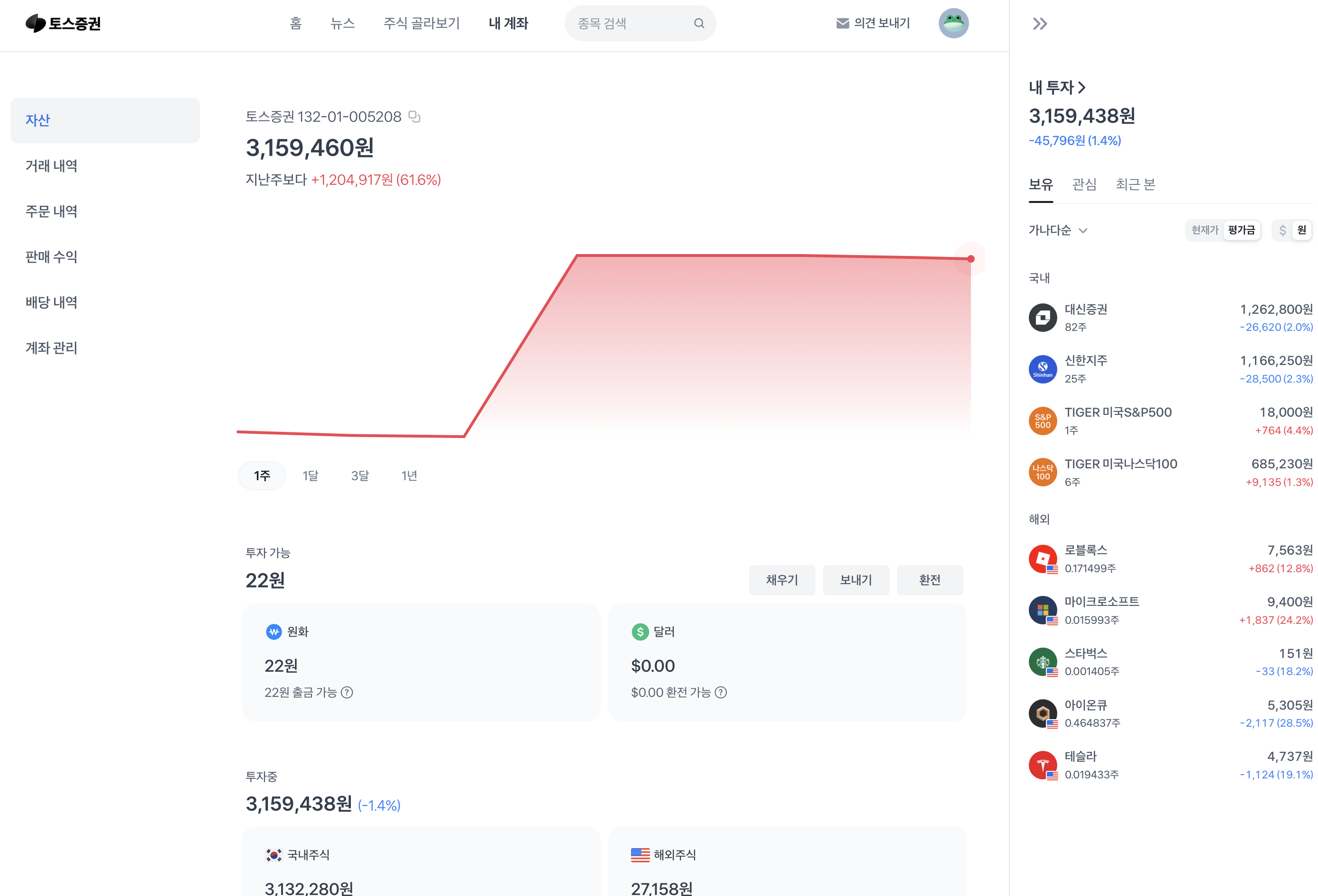 내계좌를 들어가면 자산 내역및 수익정보를 확인 할수있습니다.