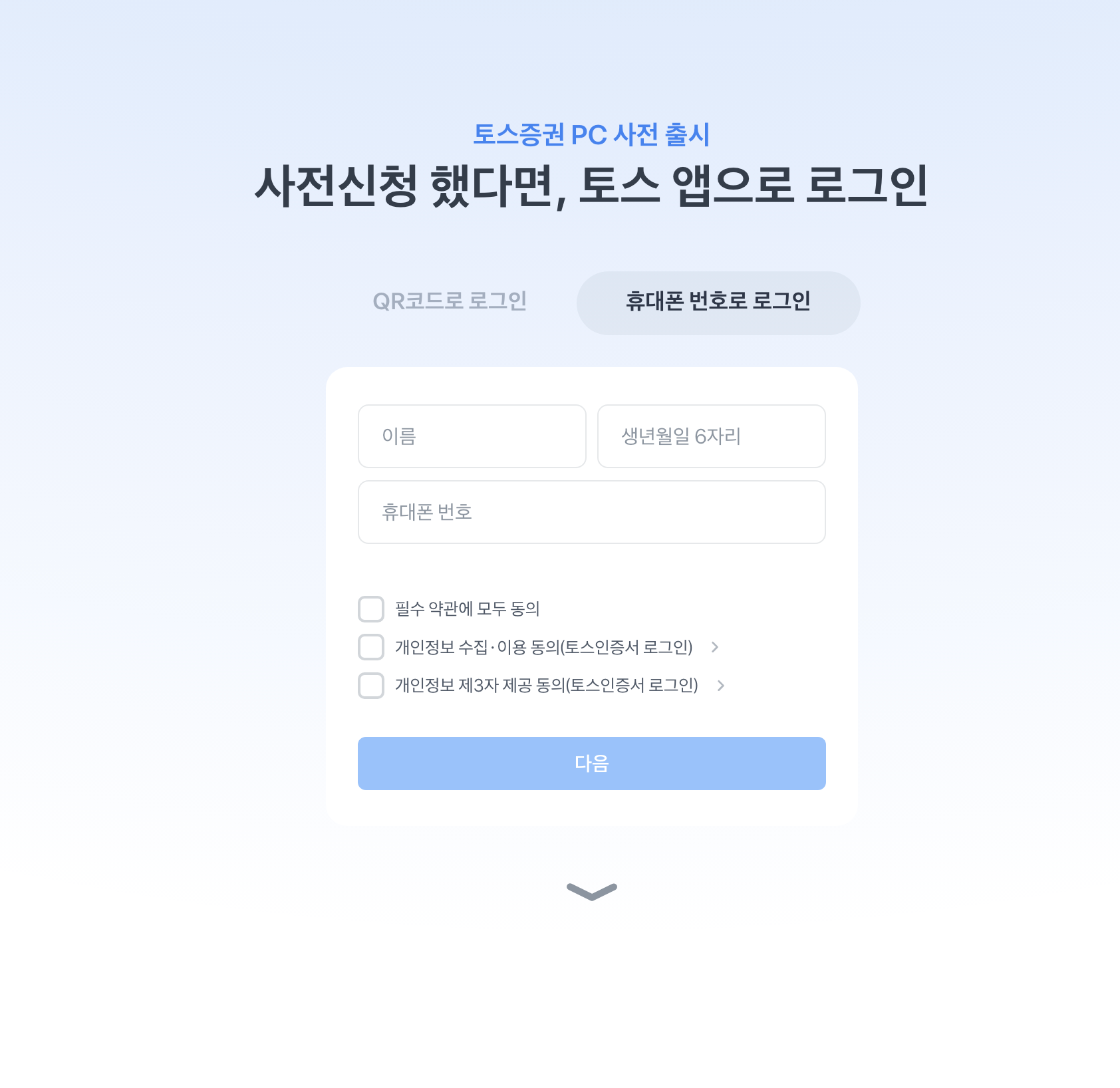 QR코드 및 휴대폰 번호로 로그인 하세요